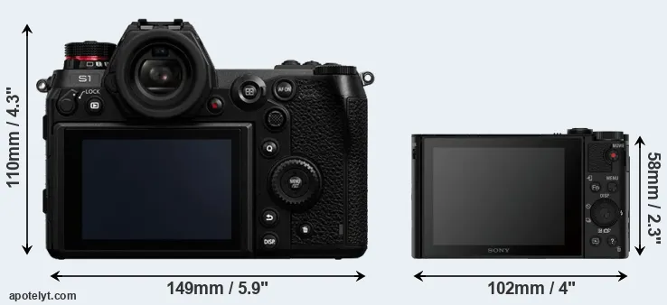 The above size and weight comparisons are to some extent incomplete and possibly misleading, as the HX90V has a lens built in, whereas the S1 is an interchangeable lens camera that requires a separate lens. Attaching the latter will add extra weight and bulk to the setup.