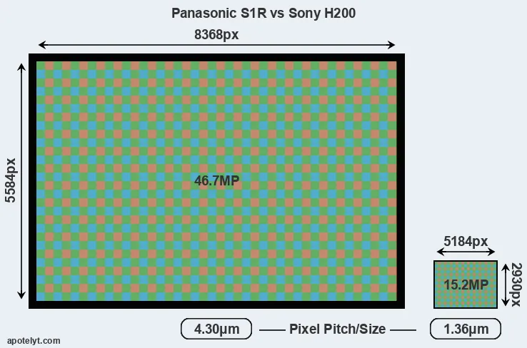 | Sensor Specs | Panasonic S1R | Sony H200 |