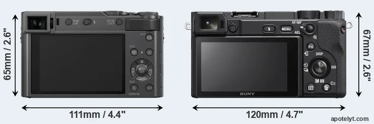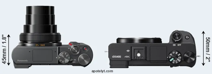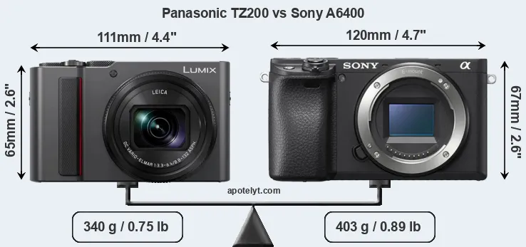 | Body Specs | Panasonic TZ200 | Sony A6400 |