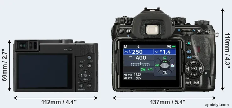 The above size and weight comparisons are to some extent incomplete and possibly misleading, as the TZ95 has a lens built in, whereas the K-1 II is an interchangeable lens camera that requires a separate lens. Attaching the latter will add extra weight and bulk to the setup.