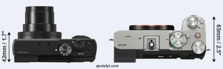 The Panasonic Lumix DC-TZ95 (called Panasonic ZS80 in some regions) and the Sony Alpha A7C R are two digital cameras that were revealed to the public, respectively, in February 2019 and August 2023. The TZ95 is a fixed lens compact, while the A7C R is a mirrorless interchangeable lens camera. The cameras are based on a 1/2.3-inch (TZ95) and a full frame (A7C R) sensor. The Panasonic has a resolution of 20.2 megapixels, whereas the Sony provides 60.2 MP.