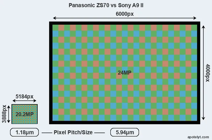 | Sensor Specs | Panasonic ZS70 | Sony A9 II |