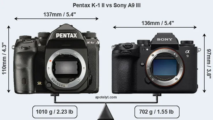 Size Pentax K-1 II vs Sony A9 III