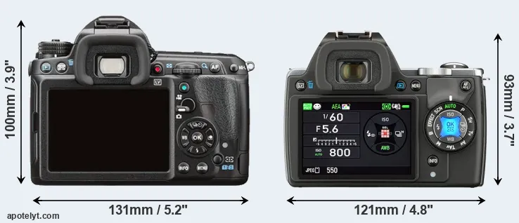 | 9. | Pentax K-5 II | 131 mm | 97 mm | 73 mm | 760 g | 740 | Y | Sep 2012 | US$ 1 099 | ebay.com | |