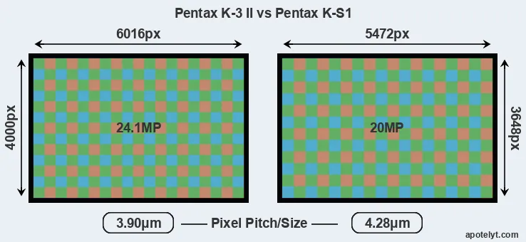 | Sensor Specs | Pentax K-3 II | Pentax K-S1 |