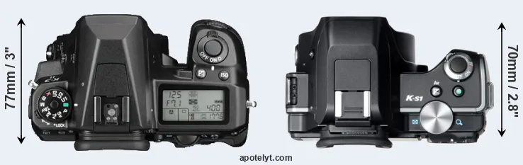 | 2. | Pentax K-S1 | 121 mm | 93 mm | 70 mm | 558 g | 410 | n | Aug 2014 | US$ 749 | ebay.com | |