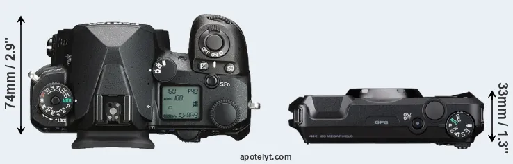The above size and weight comparisons are to some extent incomplete and possibly misleading, as the WG-8 has a lens built in, whereas the K-3 III is an interchangeable lens camera that requires a separate lens. Attaching the latter will add extra weight and bulk to the setup.