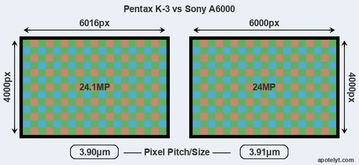 | Sensor Specs | Pentax K-3 | Sony A6000 |