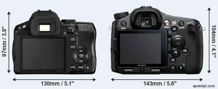 Going beyond this snapshot of core features and characteristics, what are the differences between the Pentax K-30 and the Sony Alpha SLT-A77? Which one should you buy? Read on to find out how these two cameras compare with respect to their body size, their imaging sensors, their shooting features, their input-output connections, and their reception by expert reviewers.