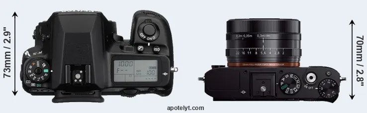 The above size and weight comparisons are to some extent incomplete and possibly misleading, as the RX1R has a lens built in, whereas the K-5 is an interchangeable lens camera that requires a separate lens. Attaching the latter will add extra weight and bulk to the setup.