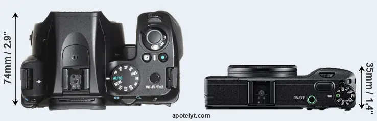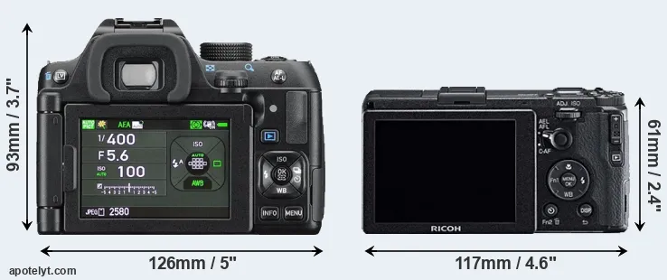The above size and weight comparisons are to some extent incomplete and possibly misleading, as the GR has a lens built in, whereas the K-70 is an interchangeable lens camera that requires a separate lens. Attaching the latter will add extra weight and bulk to the setup.