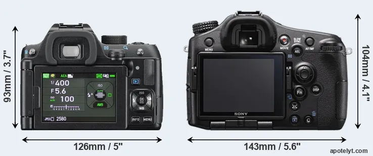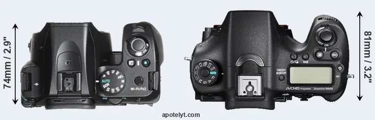 | 15. | Sony A77 | 143 mm | 104 mm | 81 mm | 732 g | 470 | Y | Aug 2011 | US$ 1 399 | ebay.com | |