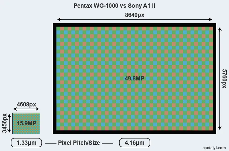 Pentax WG-1000 and Sony A1 II sensor measures