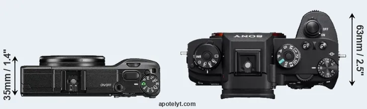 The above size and weight comparisons are to some extent incomplete and possibly misleading, as the GR II has a lens built in, whereas the A9 is an interchangeable lens camera that requires a separate lens. Attaching the latter will add extra weight and bulk to the setup. You can compare the optics available for the A9 and their specifications in the Sony FE Lens Catalog.