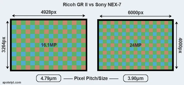 | Sensor Specs | Ricoh GR II | Sony NEX-7 |