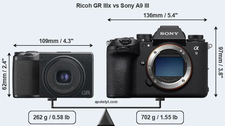 | Body Specs | Ricoh GR IIIx | Sony A9 III |