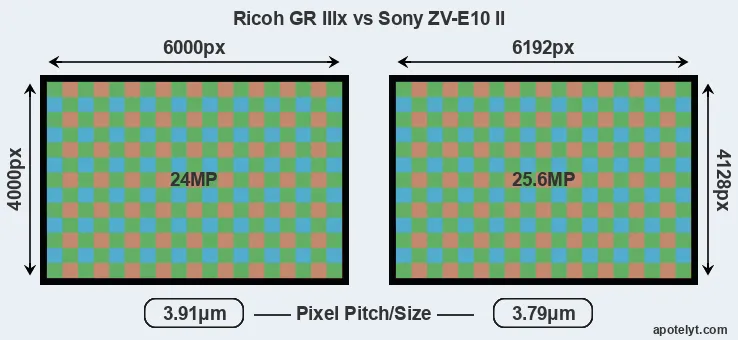 | Sensor Specs | Ricoh GR IIIx | Sony ZV-E10 II |