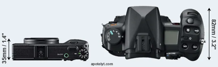 The above size and weight comparisons are to some extent incomplete and possibly misleading, as the GR has a lens built in, whereas the A850 is an interchangeable lens camera that requires a separate lens. Attaching the latter will add extra weight and bulk to the setup.