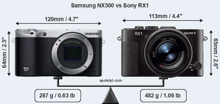 The above size and weight comparisons are to some extent incomplete and possibly misleading, as the RX1 has a lens built in, whereas the NX500 is an interchangeable lens camera that requires a separate lens. Attaching the latter will add extra weight and bulk to the setup.