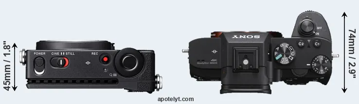 The side-by-side display below illustrates the physical size and weight of the Sigma fp L and the Sony A7 III. The two cameras are presented according to their relative size. Three consecutive perspectives from the front, the top, and the back are available. All width, height and depth measures are rounded to the nearest millimeter.