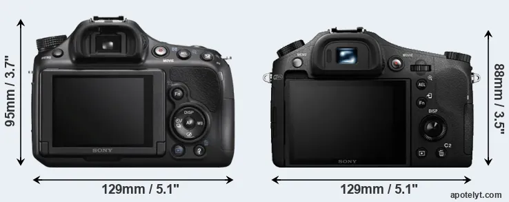 The side-by-side display below illustrates the physical size and weight of the Sony A58 and the Sony RX10 II. The two cameras are presented according to their relative size. Three consecutive perspectives from the front, the top, and the back are available. All size dimensions are rounded to the nearest millimeter.