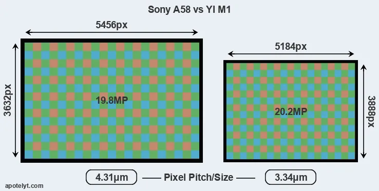 | Sensor Specs | Sony A58 | YI M1 |