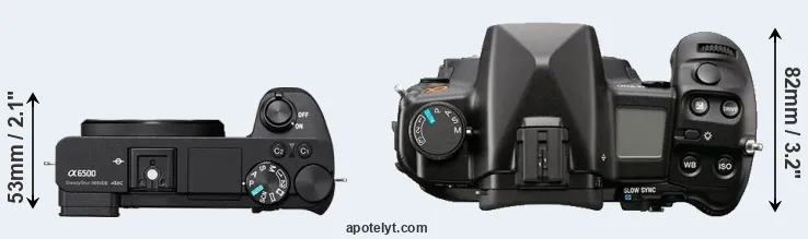 | 1. | Sony A6500 | 120 mm | 67 mm | 53 mm | 453 g | 350 | Y | Oct 2016 | US$ 1 399 | ebay.com | |