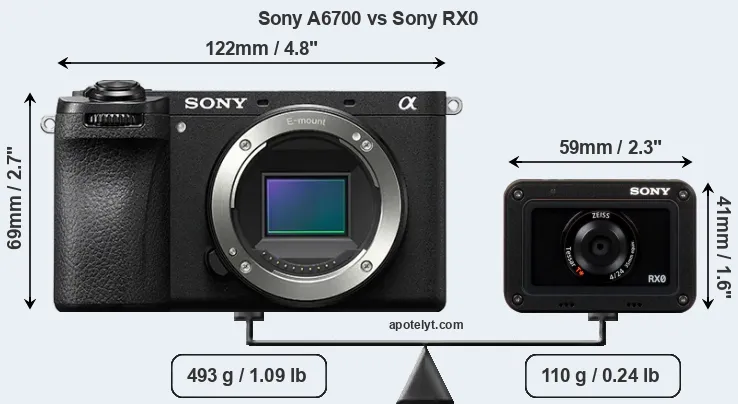 The above size and weight comparisons are to some extent incomplete and possibly misleading, as the RX0 has a lens built in, whereas the A6700 is an interchangeable lens camera that requires a separate lens. Attaching the latter will add extra weight and bulk to the setup. You can compare the optics available for the A6700 and their specifications in the Sony E-Mount Lens Catalog.