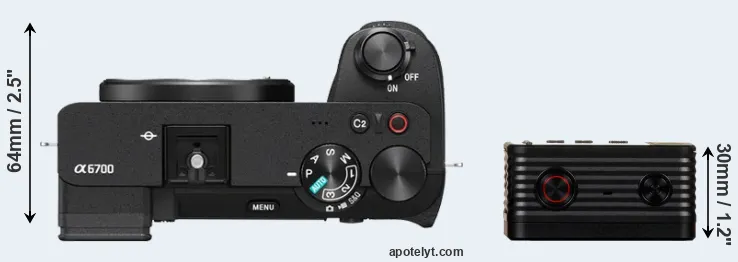 | 1. | Sony A6700 | 122 mm | 69 mm | 64 mm | 493 g | 570 | Y | Jul 2023 | US$ 1 399 | amazon.com | |