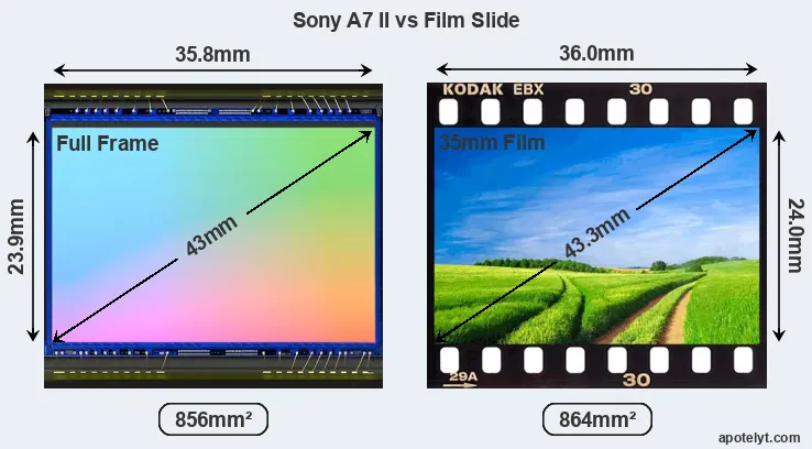 The Sony A7 II features a full frame sensor and has a format factor (sometimes also referred to as "crop factor") of 1.0. Within the spectrum of camera sensors, this places the Sony A7 II among the large-sensor cameras that aim for top notch image quality.