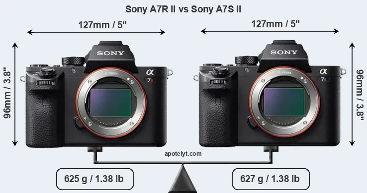 In this particular case, the Sony A7R II and the Sony A7S II have exactly the same width and height, and, thus, have identically-sized bodies. However, the A7S II is slightly heavier (0 percent) than the A7R II. In this context, it is worth noting that both cameras are splash and dust-proof and can, hence, be used in inclement weather conditions or harsh environments.