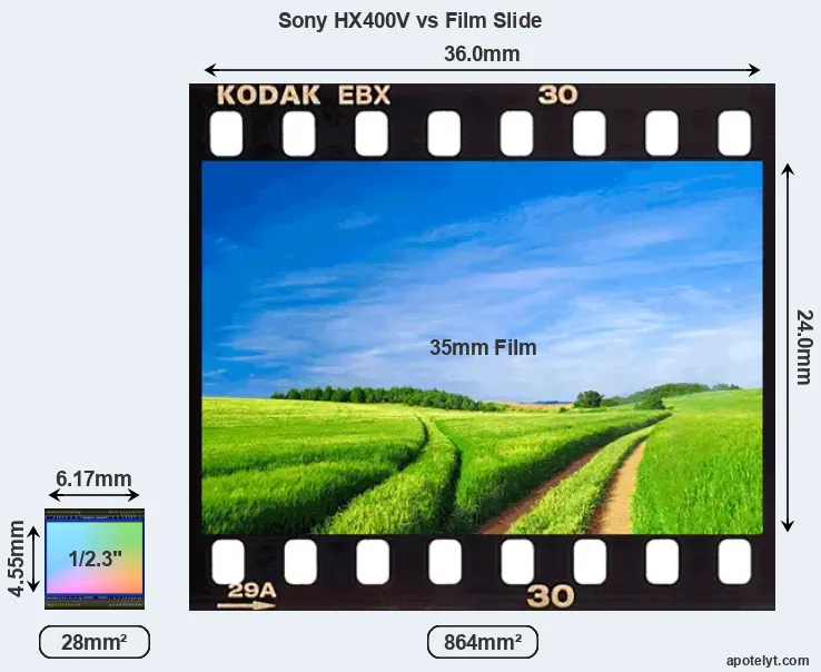 The Sony HX400V features a 1/2.3-inch sensor and has a format factor (sometimes also referred to as "crop factor") of 5.6. Within the spectrum of camera sensors, this places the Sony HX400V among the smaller-sensor digicams that favor affordability and compact design.
