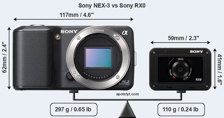 | Body Specs | Sony NEX-3 | Sony RX0 |