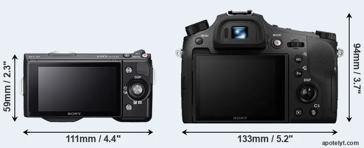Going beyond this snapshot of core features and characteristics, what are the differences between the Sony Alpha NEX-5N and the Sony Cyber-shot DSC-RX10 IV? Which one should you buy? Read on to find out how these two cameras compare with respect to their body size, their imaging sensors, their shooting features, their input-output connections, and their reception by expert reviewers.