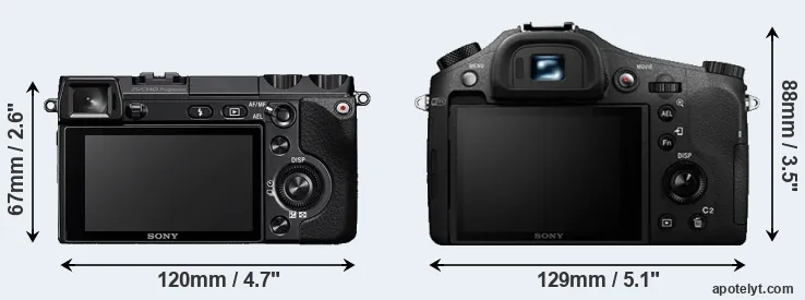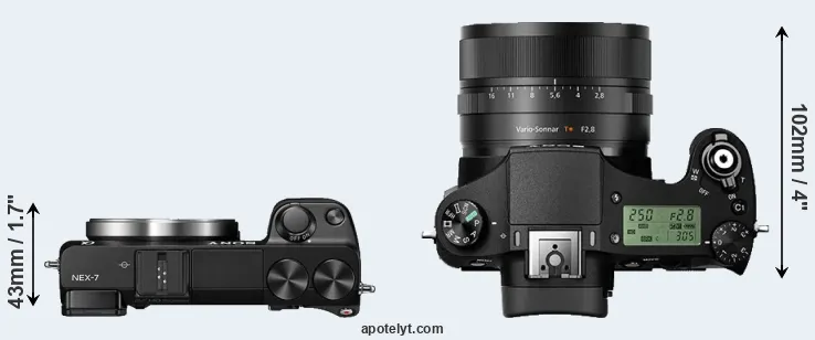 Going beyond this snapshot of core features and characteristics, what are the differences between the Sony Alpha NEX-7 and the Sony Cyber-shot DSC-RX10 II? Which one should you buy? Read on to find out how these two cameras compare with respect to their body size, their imaging sensors, their shooting features, their input-output connections, and their reception by expert reviewers.