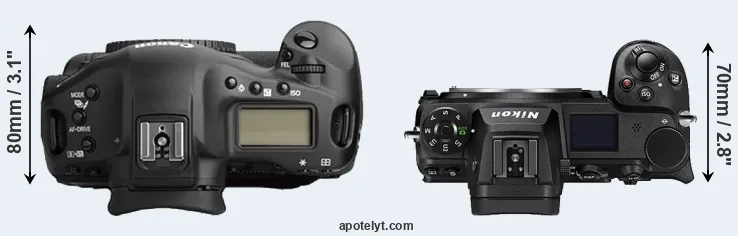 Size Canon 1Ds Mark II vs Nikon Z6 II