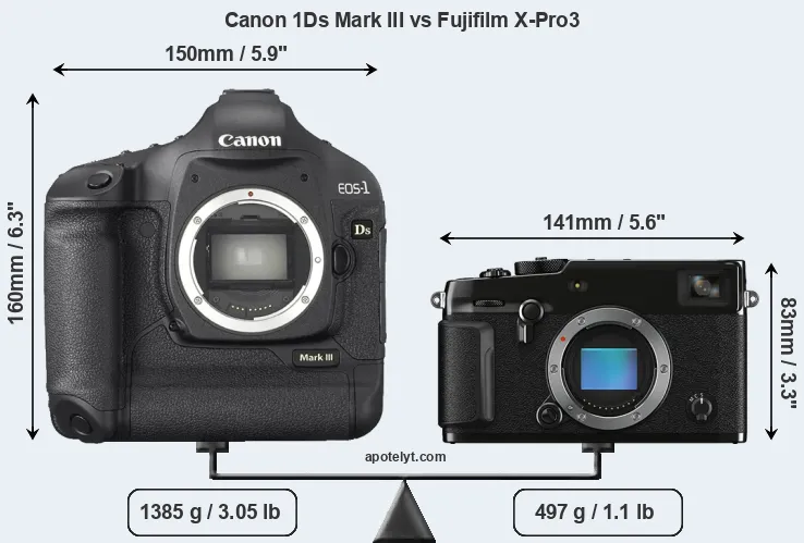 Size Canon 1Ds Mark III vs Fujifilm X-Pro3