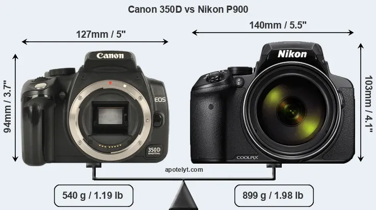 Size Canon 350D vs Nikon P900