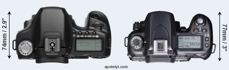 | 2. | Nikon D80 | 132 mm | 103 mm | 77 mm | 668 g | 600 | n | Aug 2006 | US$ 999 | ebay.com | |