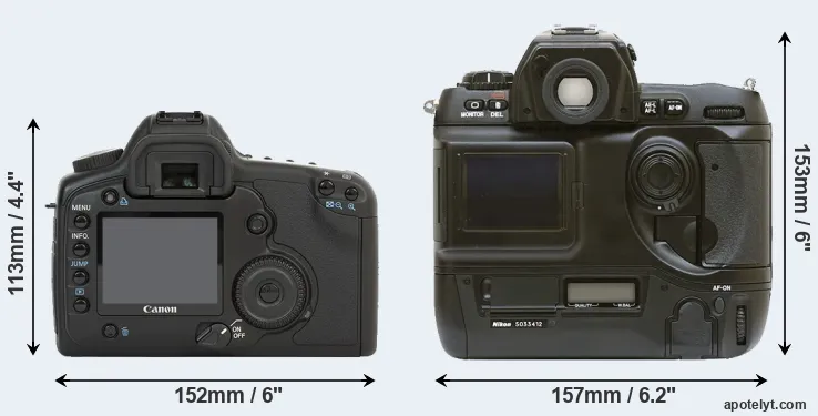 Canon 1D Mark II N 156 mm 158 mm 80 mm 1565 g 1200 Y Aug 2005 US$ 3 999ebay.com