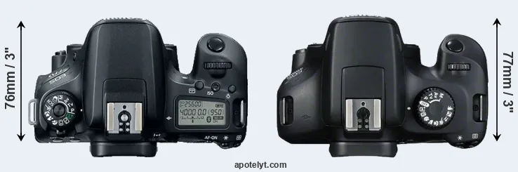 | 1. | Canon 77D | 131 mm | 100 mm | 76 mm | 540 g | 600 | n | Feb 2017 | US$ 899 | ebay.com | |