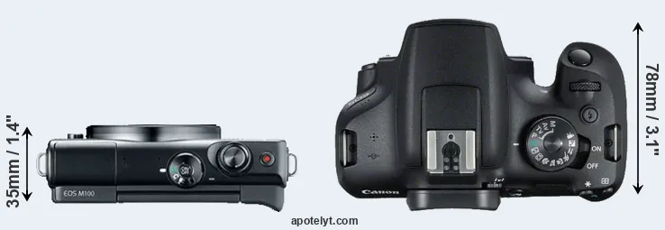 Die Canon EOS M100 und die Canon EOS Rebel T7 sind zwei digitale Kameras, die im August 2017 beziehungsweise im Februar 2018 vorgestellt wurden. Die M100 is eine eine spiegellose Wechselobjektivkamera, während es sich bei der T7 um eine digitale Spiegelreflexkamera handelt. Beide Kameras sind mit einem APS-C Sensor ausgerüstet. Beide Kameras bieten eine Auflösung von 24,0 Megapixel.