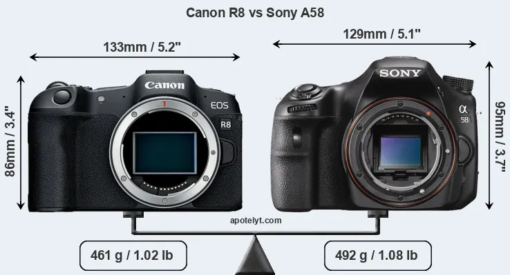 Size Canon R8 vs Sony A58