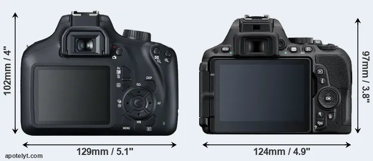 Die Canon EOS Rebel T100 und die Nikon D5500 sind zwei digitale Kameras, die im Februar 2018 beziehungsweise im Januar 2015 vorgestellt wurden. Bei beiden Modellen handelt es sich um Digitale Spiegelreflexkameras die mit einem APS-C Sensor ausgerüstet sind. Die Canon hat eine Auflösung von 17,9 Megapixel, während die Nikon 24,0 MP bietet.
