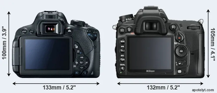 | 9. | Canon T4i | 133 mm | 100 mm | 79 mm | 575 g | 440 | n | Jun 2012 | US$ 849 | ebay.com | |