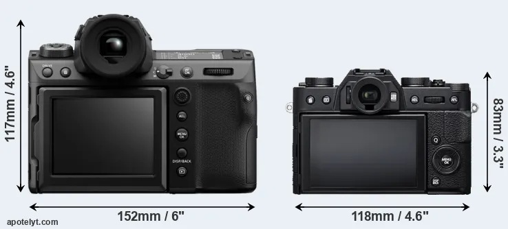 Comparison GFX 100 II or X-T20 rear
