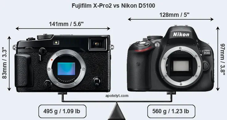 Size Fujifilm X-Pro2 vs Nikon D5100