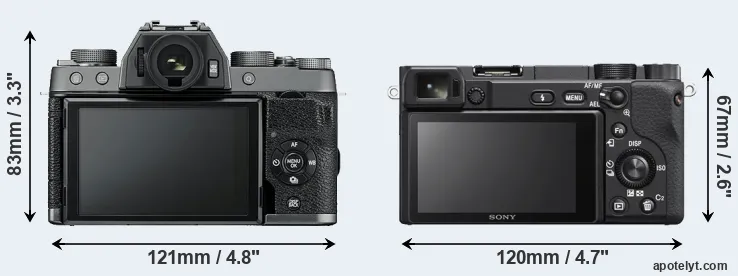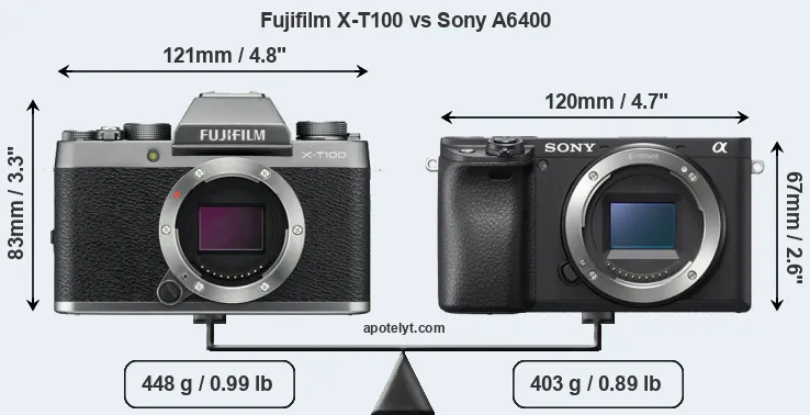 Size Fujifilm X-T100 vs Sony A6400