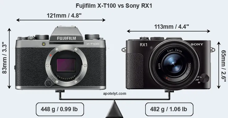 Size Fujifilm X-T100 vs Sony RX1