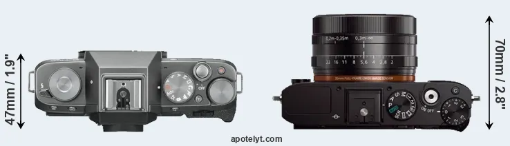 Compare X-T100 versus RX1 top